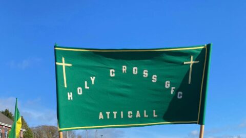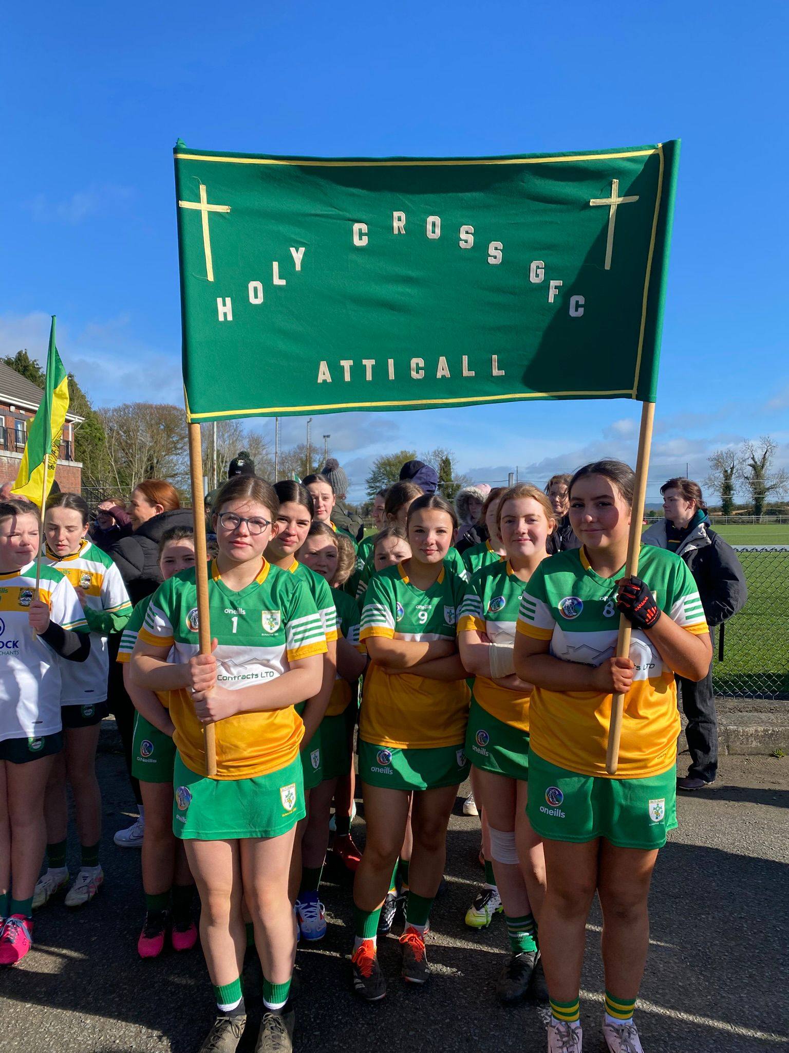 The team also had the honour of bringing a special piece of club history with them, as the vintage Holy Cross GFC banner was proudly carried in the tournament procession. A sincere thank you to Elizabeth Keenan for preserving this treasured banner for special occasions. The late John Keenan brought it to countless big days over the years, and it was a proud moment for his granddaughter and player, Orlagh, to carry it on the day.