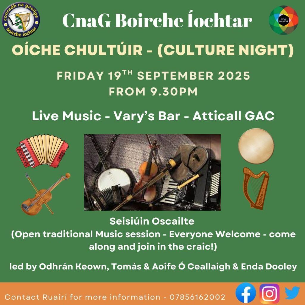 Atticall GAC is delighted to be taking part in Culture Night this Friday 19th September in Vary’s Bar!!