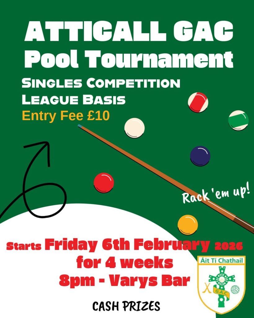 Singles Pool Competition on a league basis, kicks off this Friday Night & will run for 4 weeks!